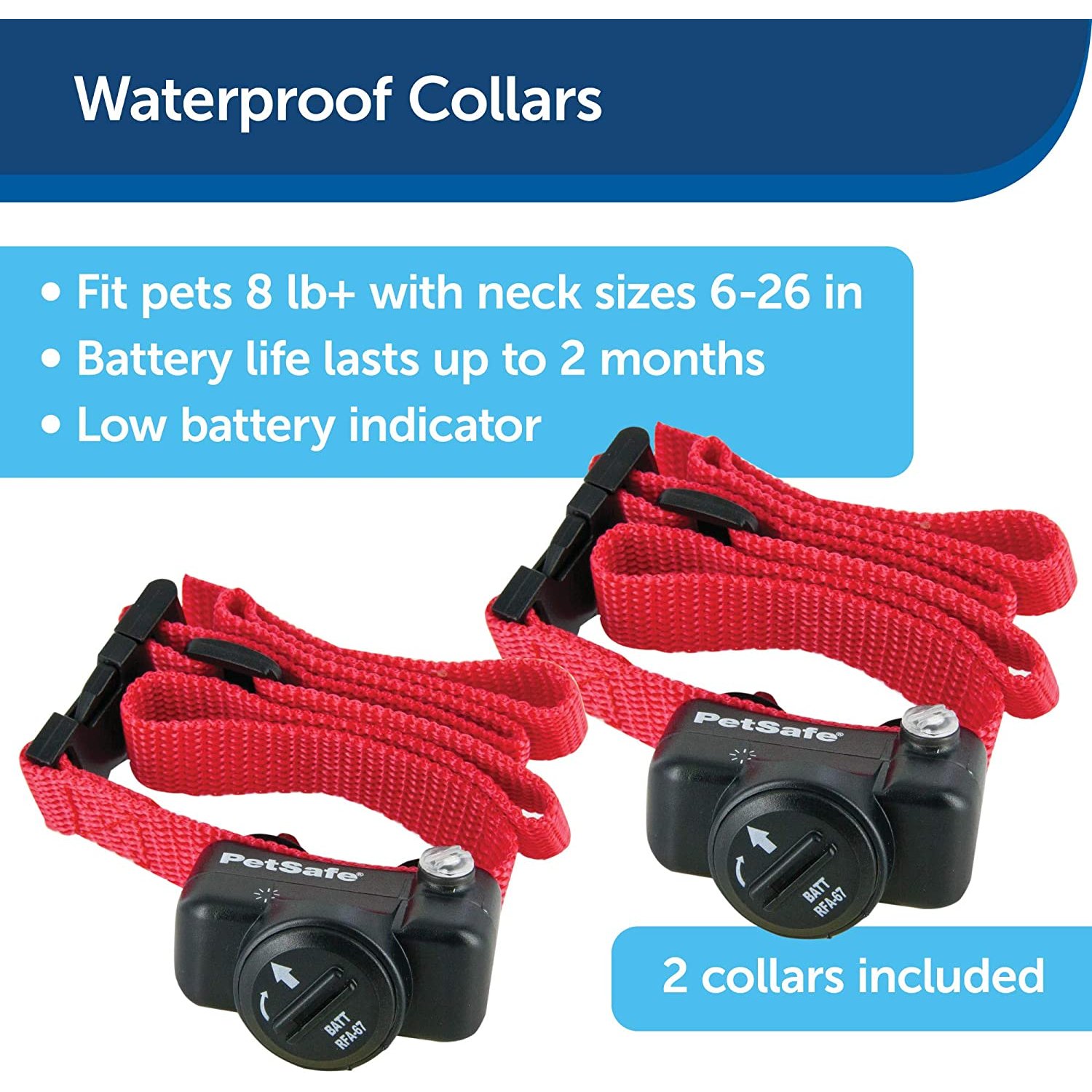 • LIGHTWEIGHT, WATERPROOF RECEIVER COLLAR: Our collars are light, slim and designed to fit small, medium, large and x-large pets that are 8 lb and up with neck sizes 6-26 in